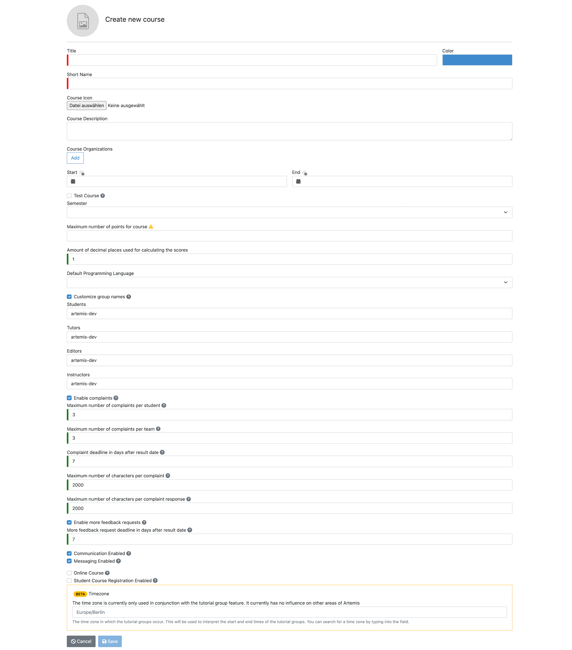 Creating courses