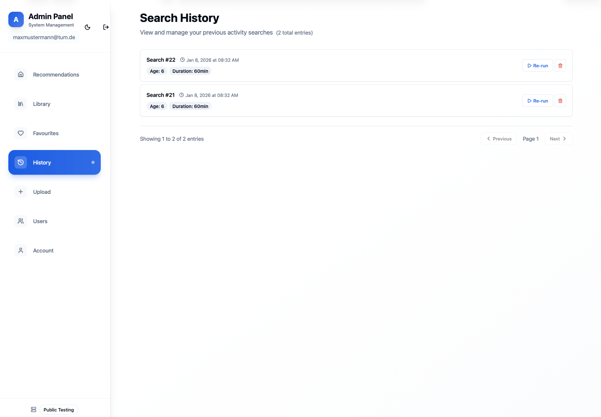Save activities and recommendations for quick access later. Track your previous searches and re-run them anytime.