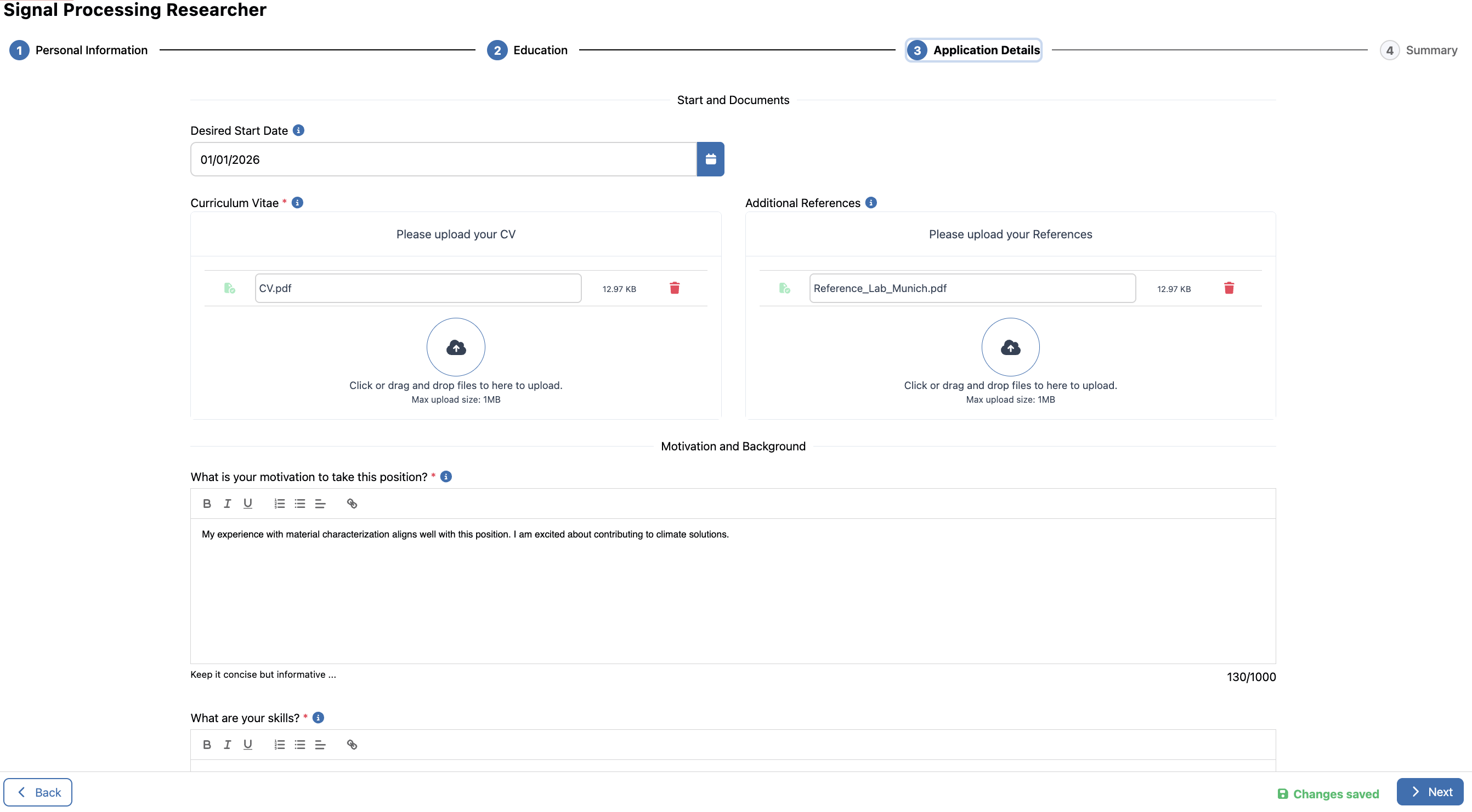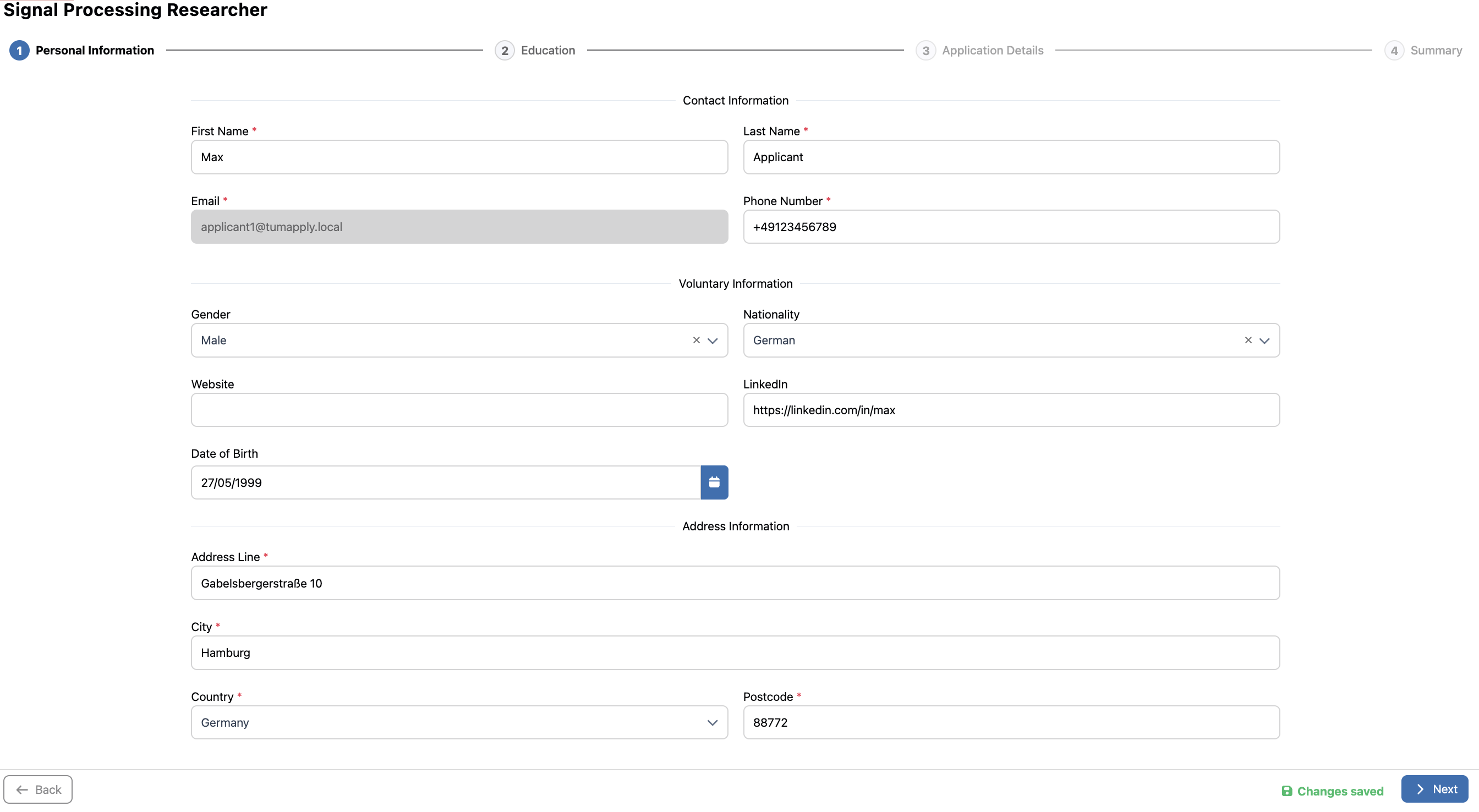 The application form is designed as a 4-page wizard to make the process manageable and ensure you don't lose your progress.